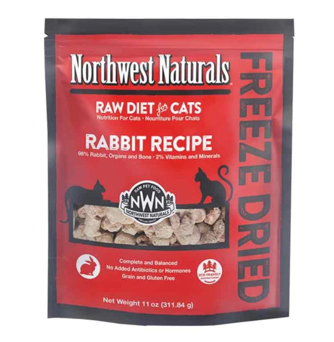 Rabbit with Bone, Rabbit Heart, Rabbit Liver, Gelatin, Water, Dulse Powder, Dried Kelp, Ground Flaxseed, Organic Psyllium Husk Powder, Salmon Oil, Inulin, Potassium Chloride, Sodium Chloride, Taurine, Vitamin B Supplement, Copper Proteinate, Manganese Proteinate, Vitamin E Supplement, Mixed Tocopherols (as preservative). Vitamin D3 Supplement.