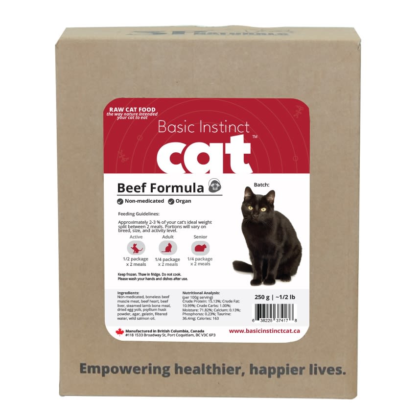 Basic Instinct is raw cat food designed to meet the specific nutritional needs of cats. This formula is made up of natural supplements and a balance of organs and meat to ensure your cat's health. Add a red meat to your cat's diet as part of a rotation diet to ensure greater health.