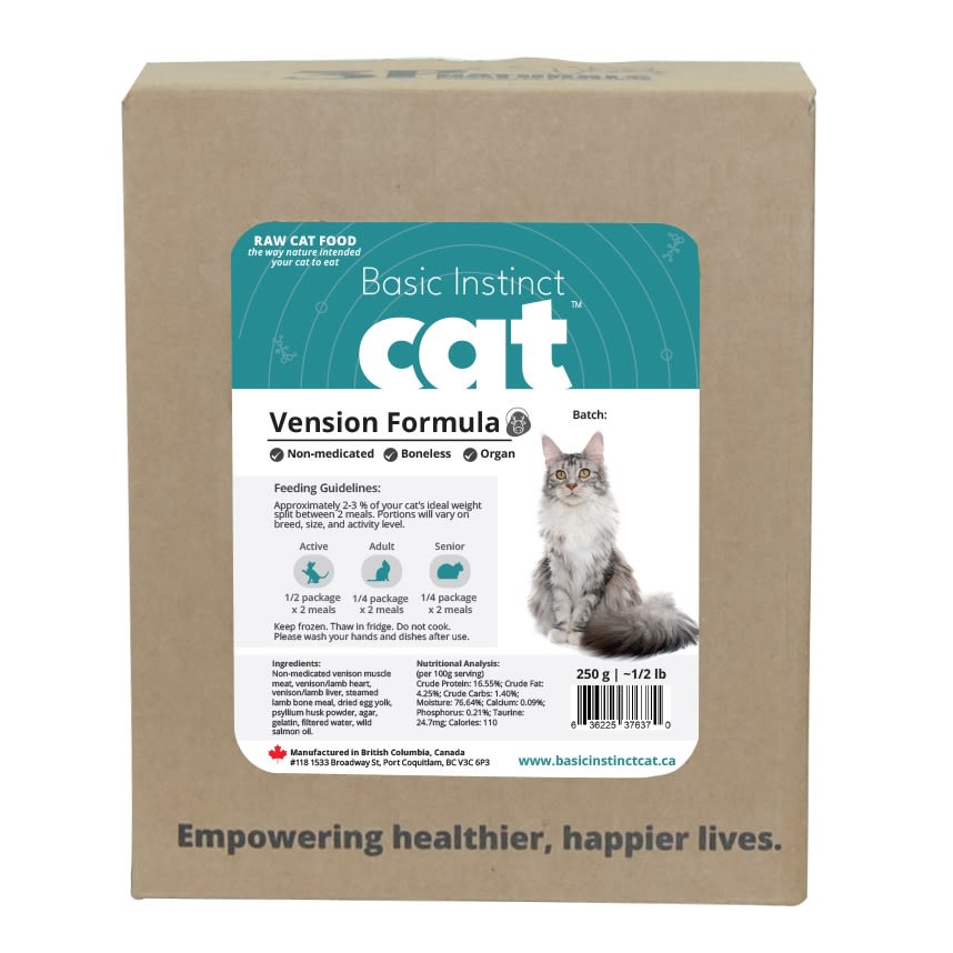Looking for a different option for a cat who has developed food sensitivities/ allergies (itchy skin)? Try the Basic Instinct Venison. Venison is considered a novelty protein for animals going through an elimination diet to figure out what protein is causing itching.