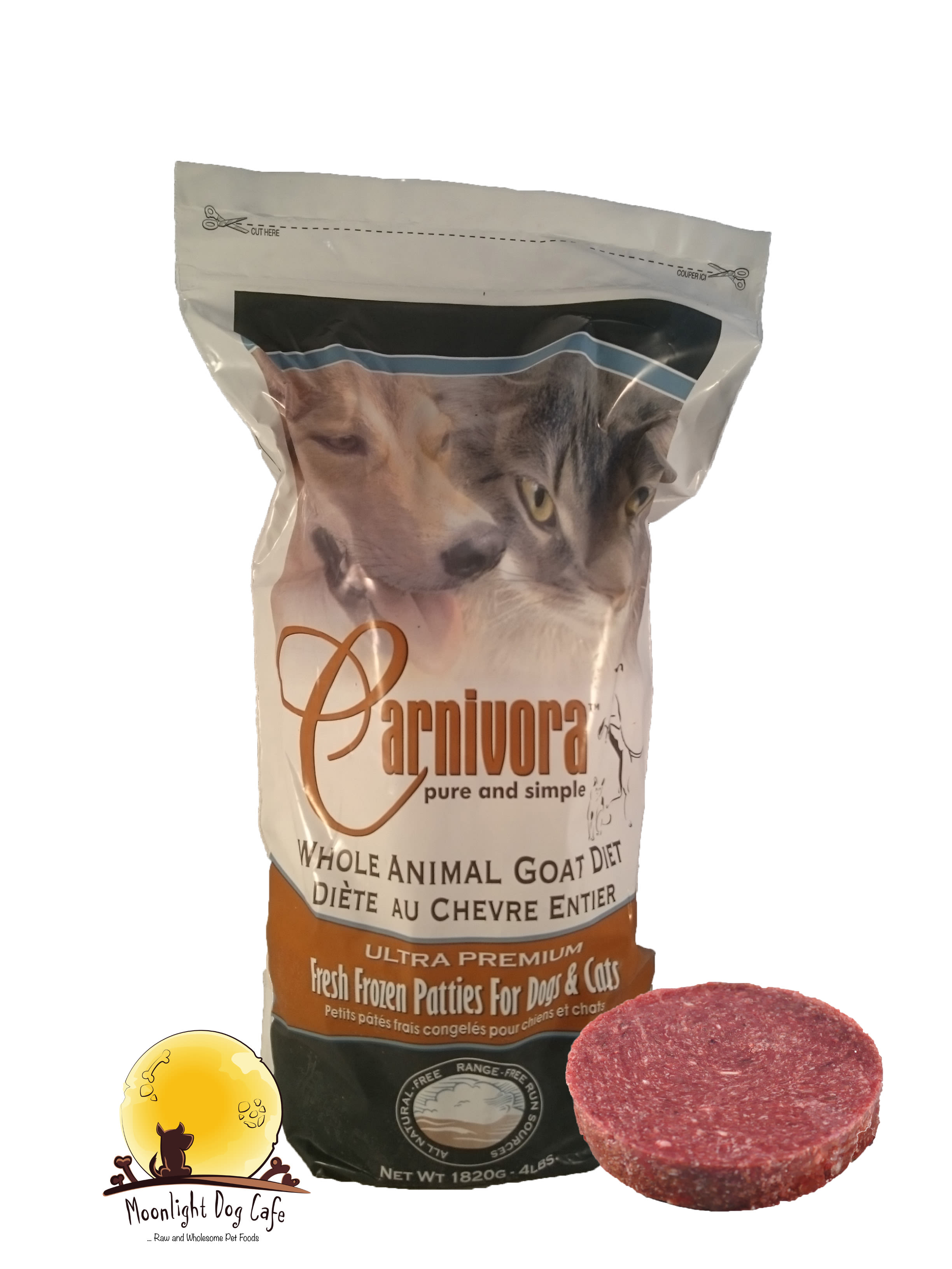 Ingredients in Carnivora Goat Diet: Finely ground whole goat carcass.