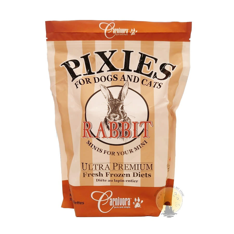 Ingredients: Finely ground whole rabbit carcass, excluding head, feet, hind, large intestin or bladder.
