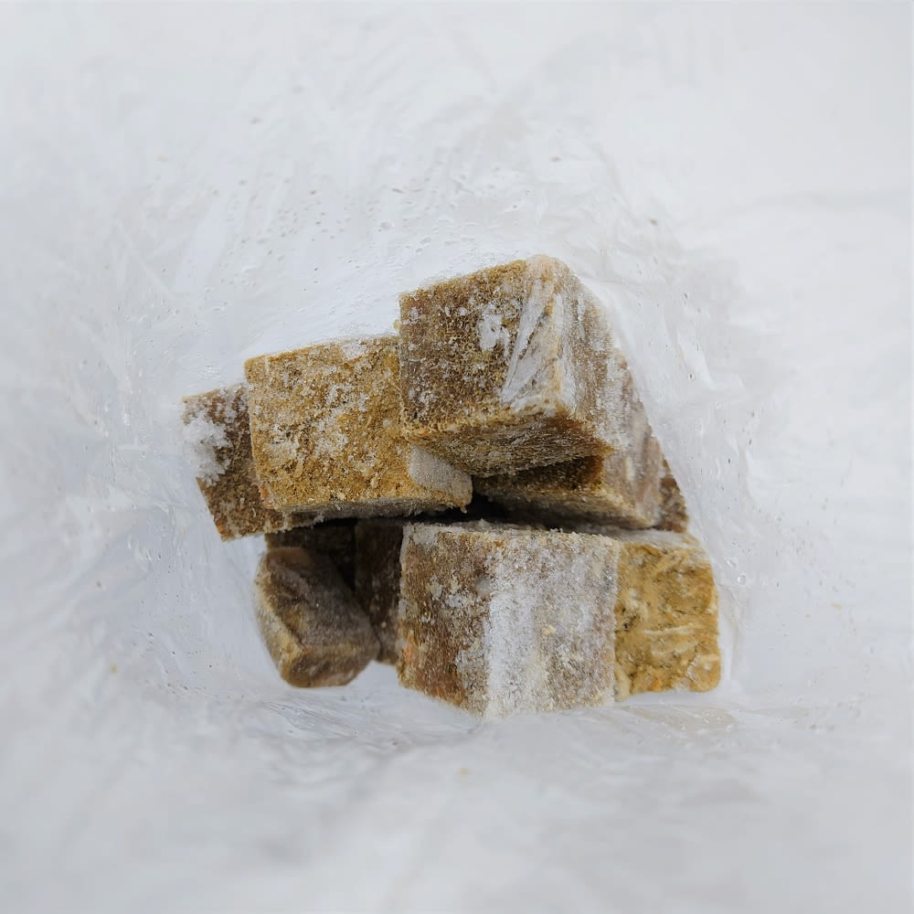 3 lb bag comes in 1" cubes - perfect for small dogs!