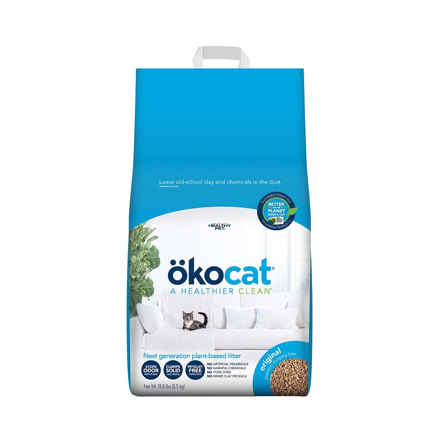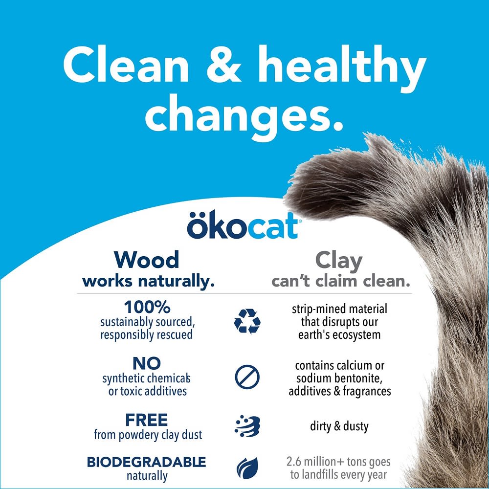All Okocat litter is made from 100% natural wood or paper fiber. Why? Because Mother Nature is brilliant. ökocat is an eco friendly cat litter made with plant fibers that naturally absorb liquids and trap odors.