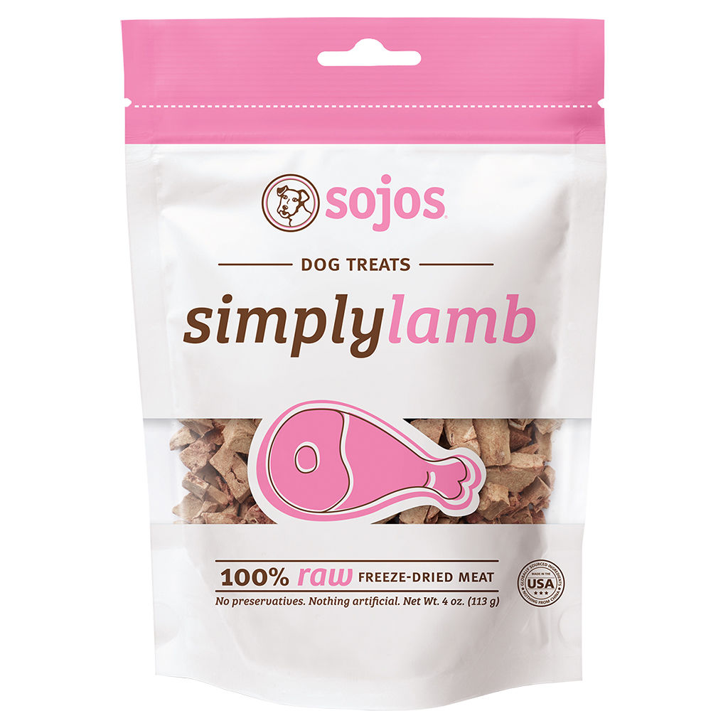Ingredients in Sojos Simply Lamb Freeze-dried Dog Treats: 100% Lamb.