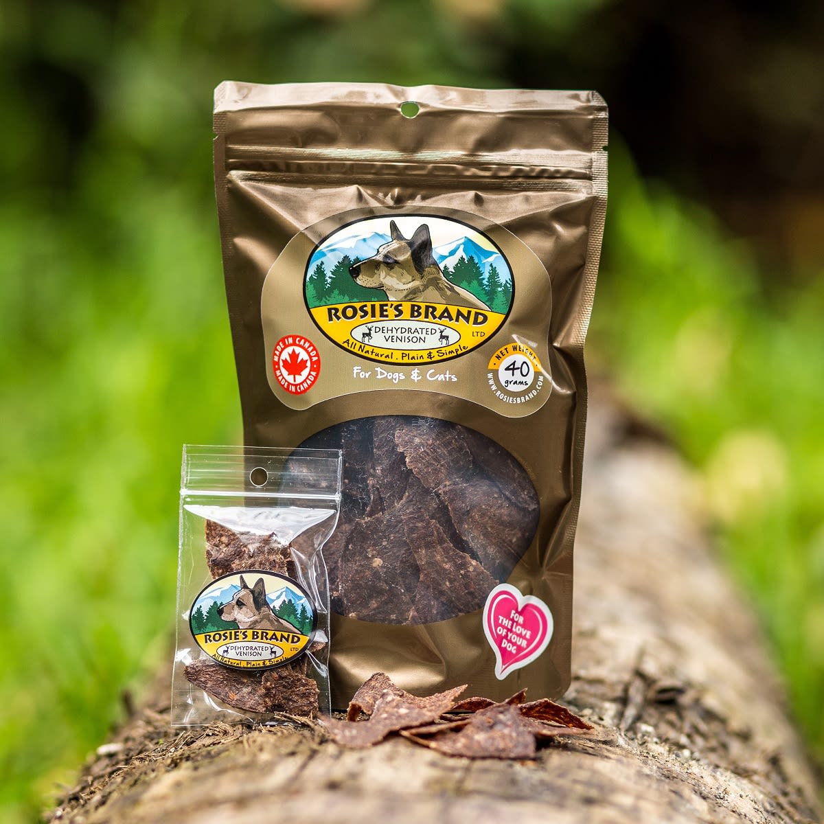 Rosie's Brand Venison Chips are very thin, easy to break apart treats that are dehydrated and baked at a high temperature - for a short period of time - to eliminate any pathogens.