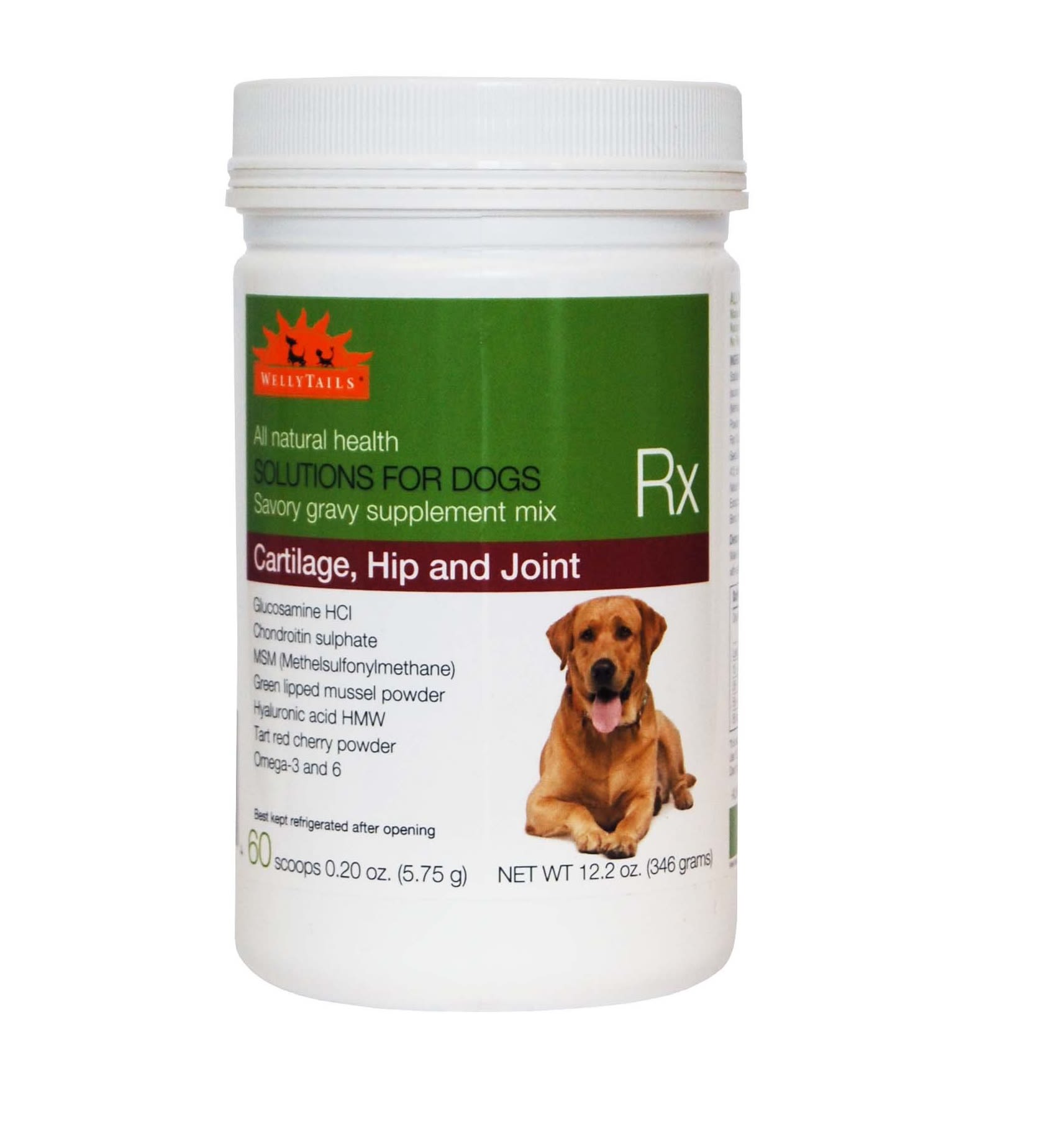 WellyTails Cartilage Hip and Joint Dog Supplement contains a number of well known proven ingredients at effective dosage rates providing you with unsurpassed proven guaranteed results. Contains well known dog cartilage natural dietary nutrient supports for cartilage health support, DHA and EPA Omega-3 as well as GLA Omega-6 to help reduce painful inflammation, Hyaluronic Acid for joint lubrication support as well as as a special tart red cherry powder to provide antioxidants helping to further reduce joint inflammation and joint pain. Give your dog's health a boost and order our dog supplement today.