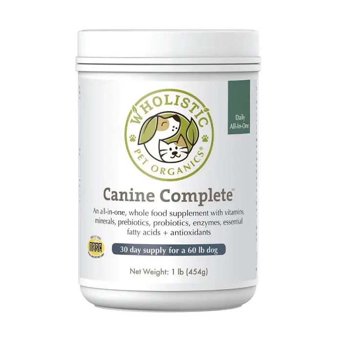 Dogs, just like us, can only reach their genetic potential if their diet delivers maximum nutrition. Most commercial dog foods cannot achieve this lofty goal because they are not formulated to do so. What’s more, no one dog food can meet every dog’s individual needs. To enjoy robust health, your dog should receive a high quality vitamin/mineral supplement, alongside essential fatty acids, digestive enzymes, and other nutrients. Wholistic Pet Organics Canine Complete accomplishes these goals with one easy-to-use complete dog supplement.